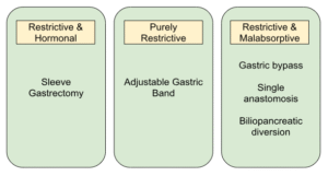 The bariatric surgery can be done in 5 different ways, which are explained as follows;
